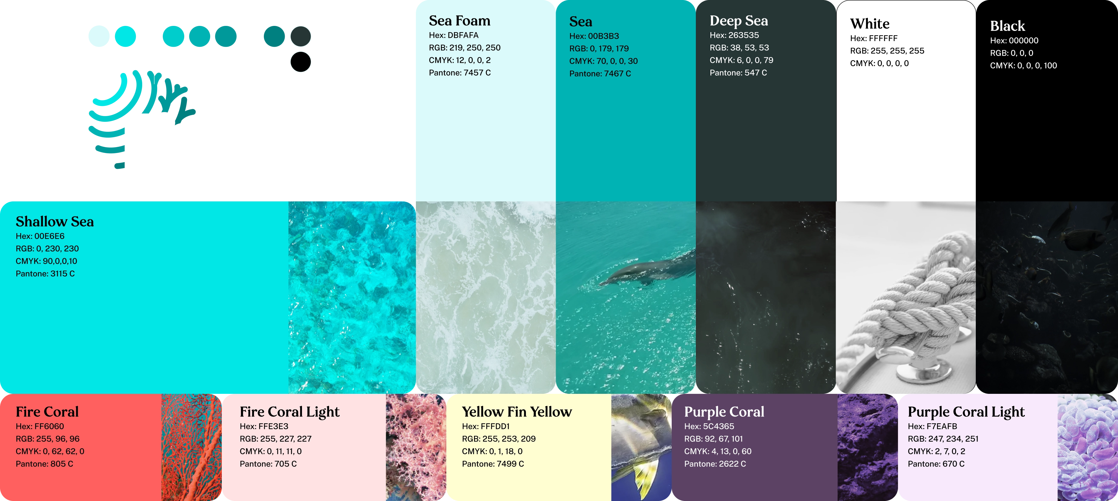 Drawing inspiration from the shallow tropical waters of the Caribbean and the undersea environment where the organization primarily operates, an appropriate, utilitarian, and aesthetically pleasing color palette was developed.