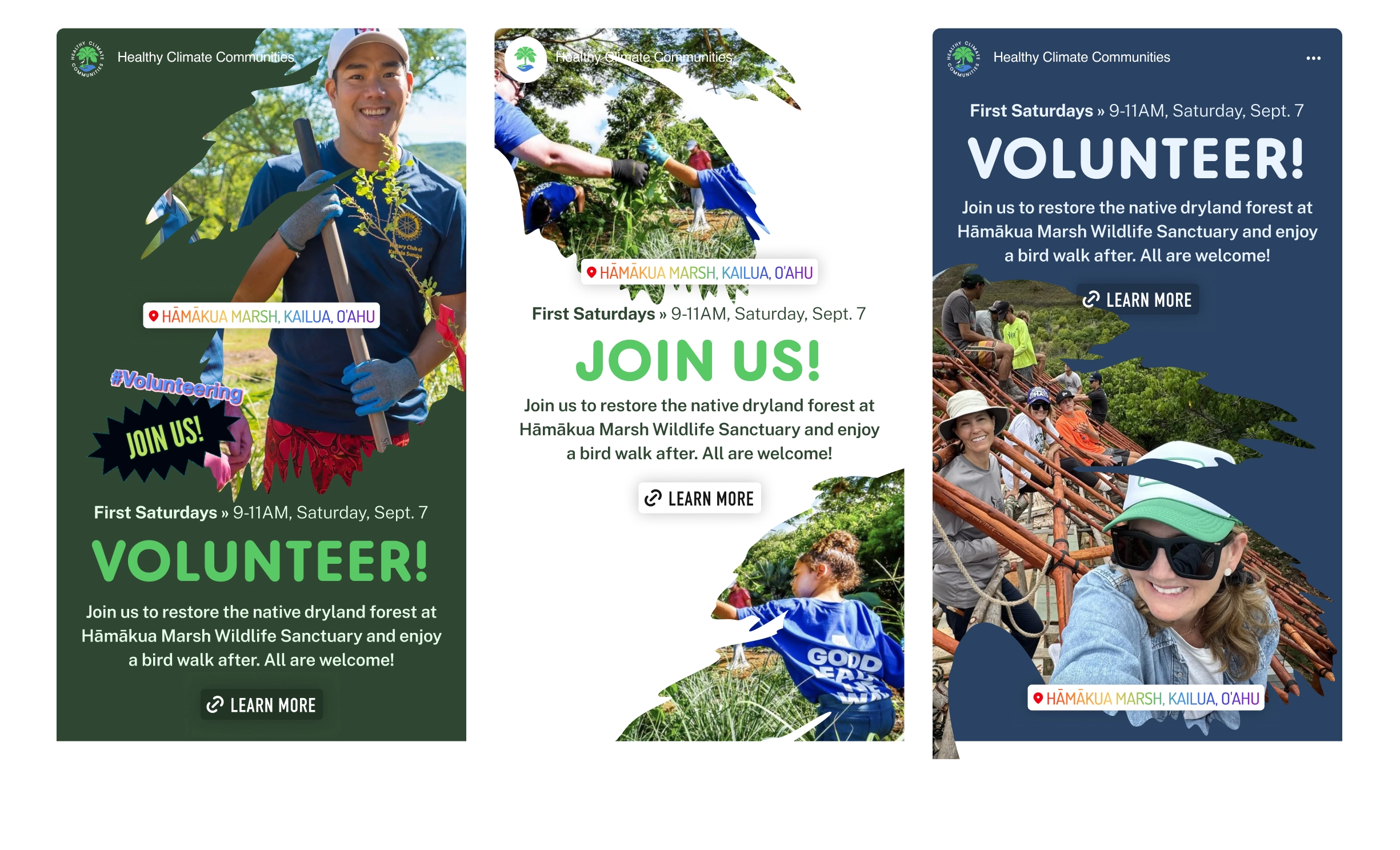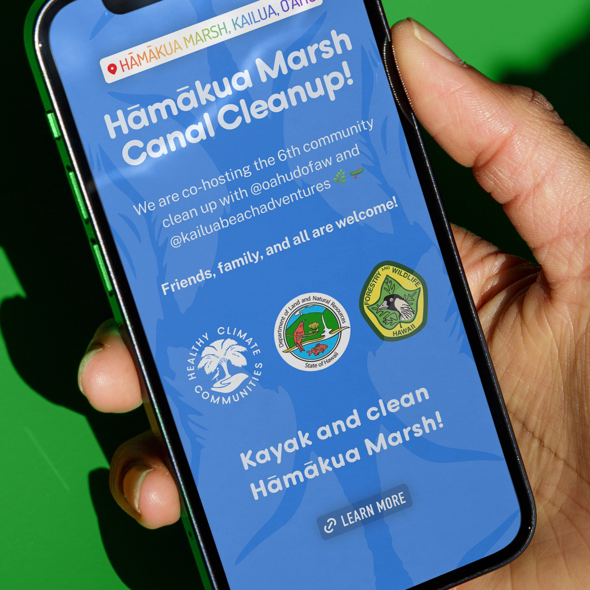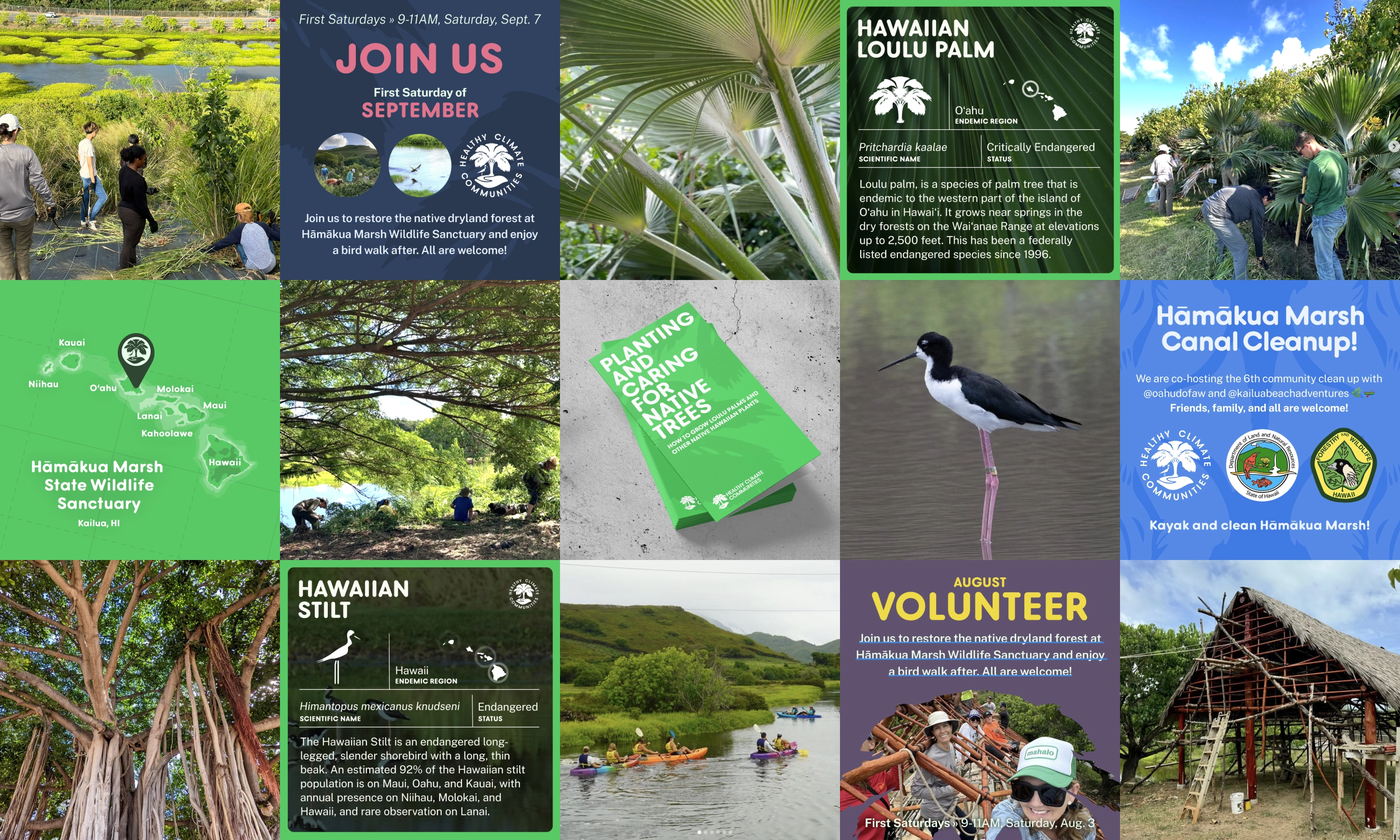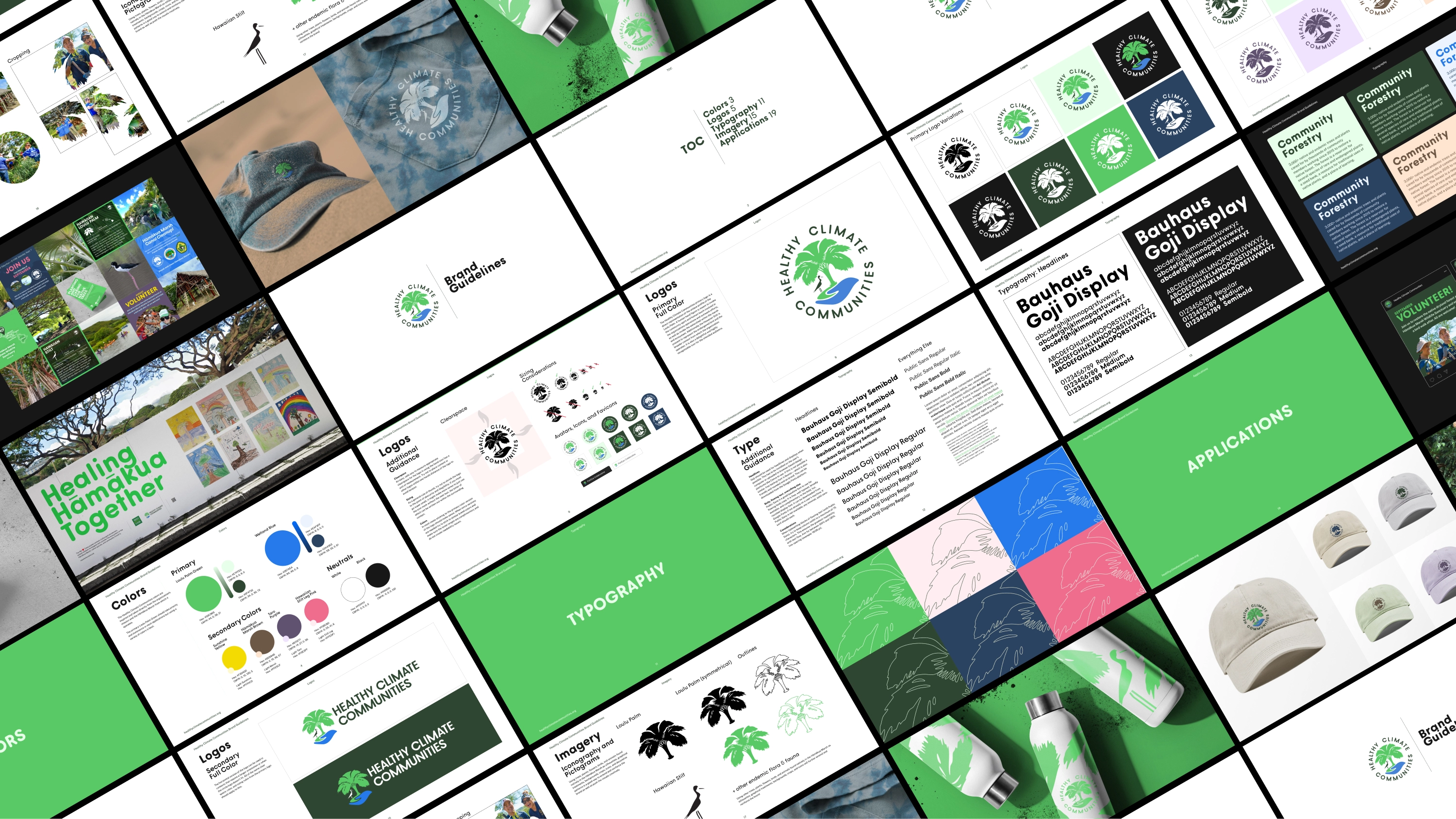 Healthy Climate Communities is a Hawaii-based non-profit that leverages education and community action to fight climate change on the island of O’ahu. One way they do this is by engaging with schools, community groups, and volunteers to plant native loulu palm saplings to grow a restorative forest on the watershed of Hāmākua Marsh Wildlife Sanctuary. A new mission-sensitive logo and identity system were developed to help mature the organization’s brand and community presence.