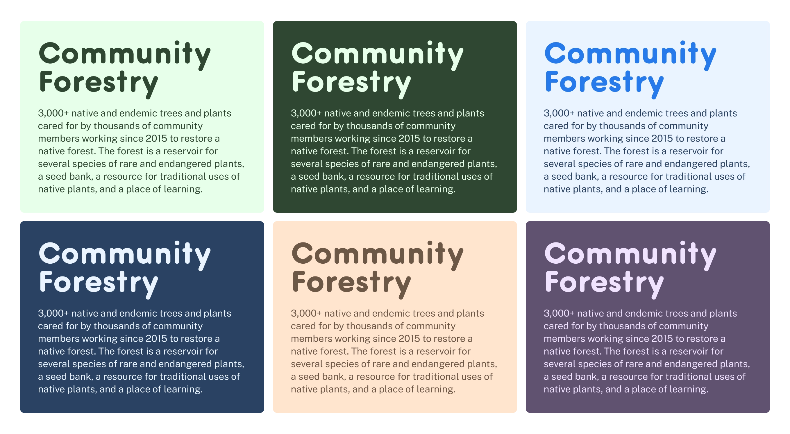 Further brand explorations were charted through physical buildouts and imaginings meant to inspire, challenge, and engage the organization’s custodians, gardeners, and community of foresters.