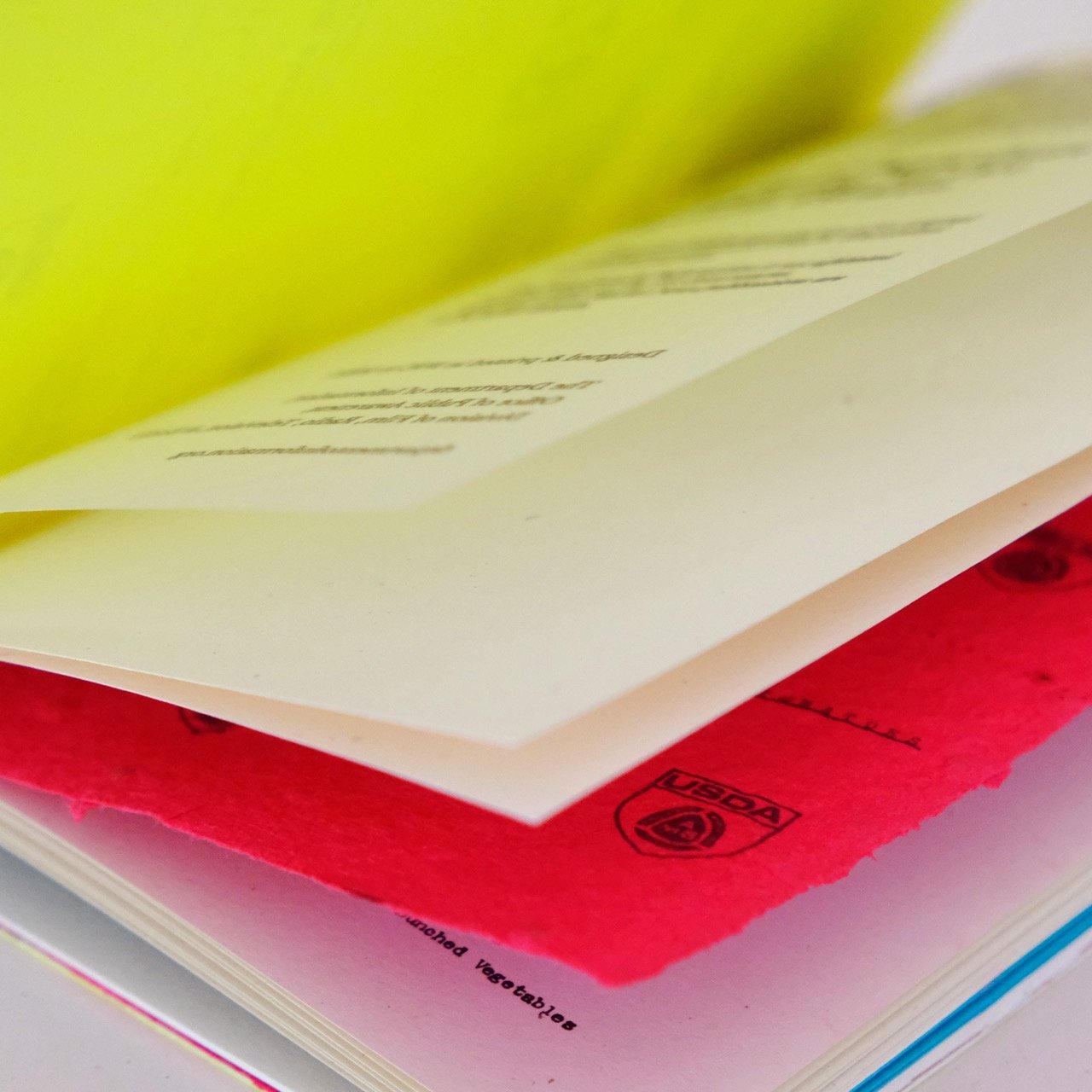 - Silkscreened black ink on Glo-Tone Shocking Yellow 80lb cover