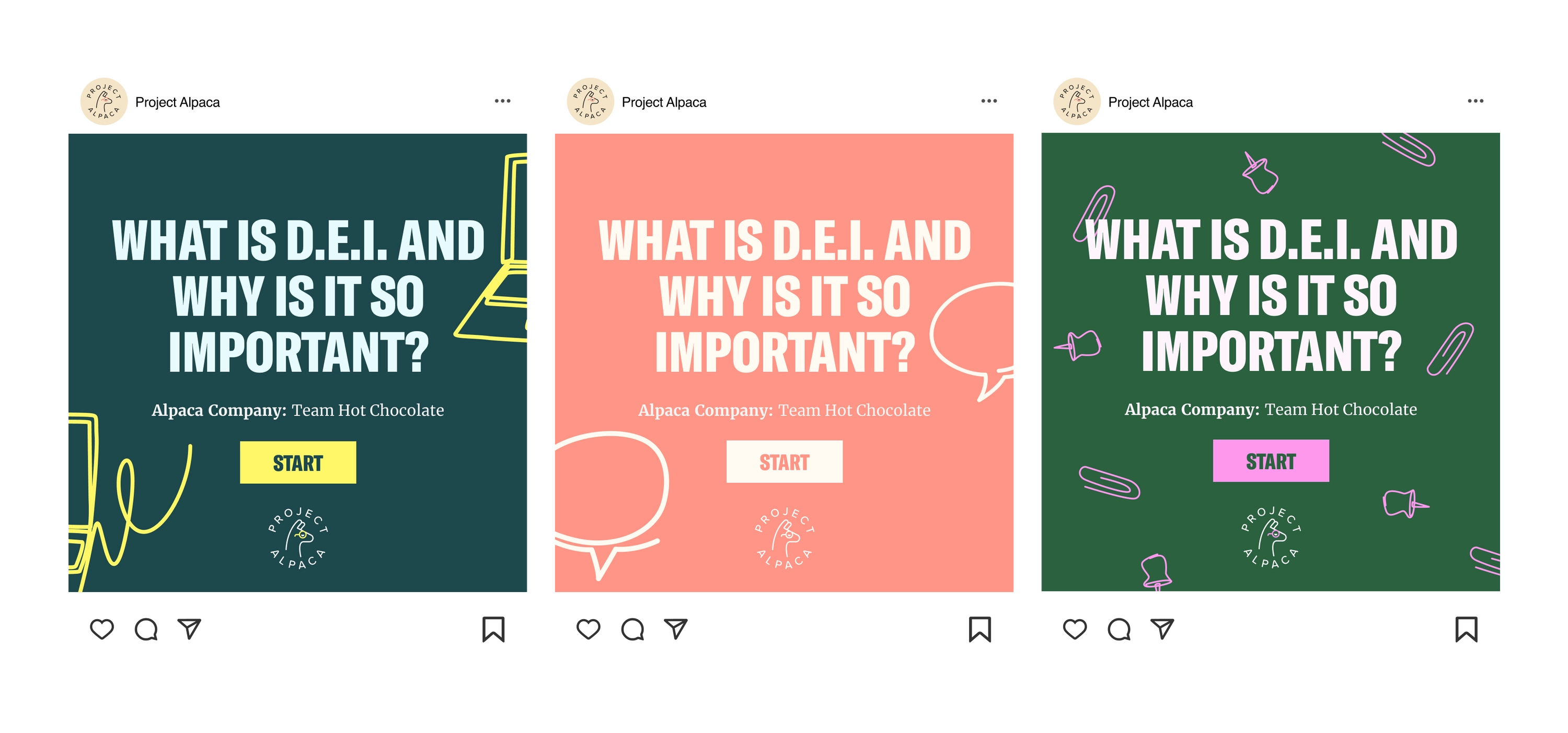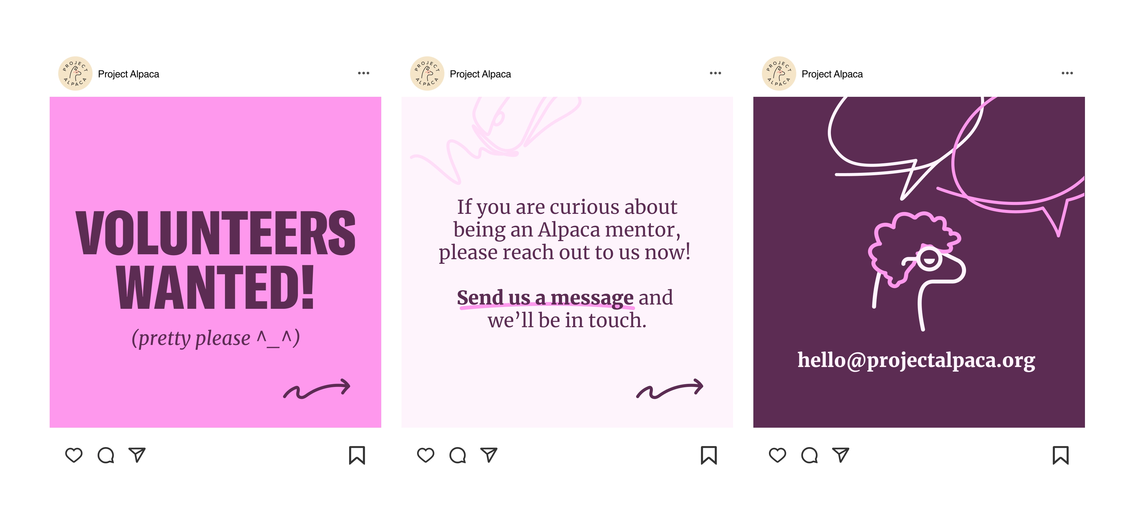 Custom alpacas were created to represent the diversity of the organization. Project Alpaca mentors are referred to as “Alpacas” and mentees as “Alpacees”, respectively.